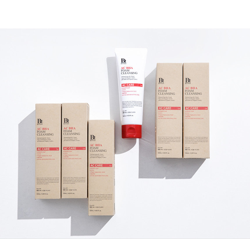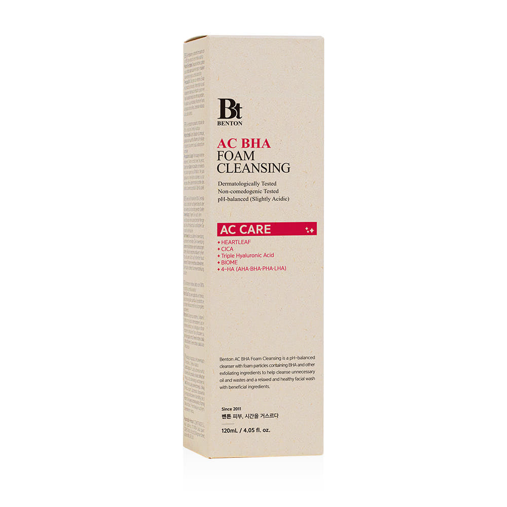Benton AC BHA Foam Cleansing is a gentle yet effective facial cleanser formulated to help cleanse pores and manage excess sebum for acne-prone skin. Infused with BHA (salicylic acid) and skin-soothing ingredients, this cleansing foam helps remove impurities, unclog pores, and reduce shine while maintaining skin moisture balance. Its soft, creamy foam provides a refreshing cleanse without irritation.