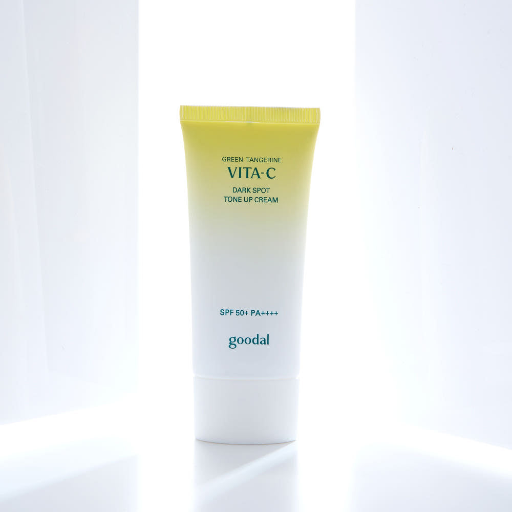 Goodal Green Tangerine Vita C Dark Spot Tone Up Cream is a daily brightening moisturizer that gives an instant tone-up effect while supporting a clearer, more even-looking complexion over time. Infused with green tangerine-derived vitamin care and tone-support ingredients, it helps improve the look of dullness and visible dark spots, while the soft, creamy texture blends smoothly for a natural-looking glow. Perfect as a “no-makeup” brightening step or as a makeup base, it helps skin look fresher, smoother, and more radiant without a heavy feel.