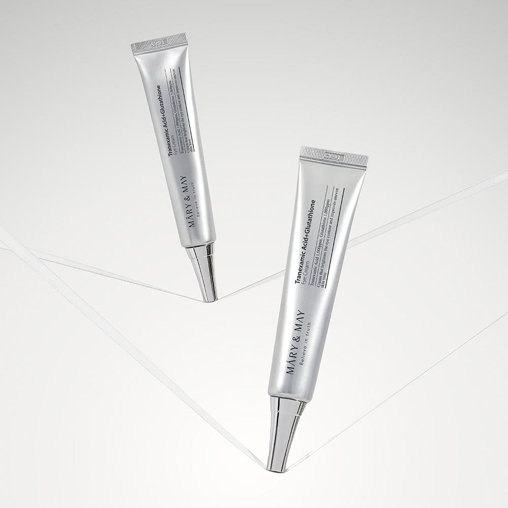 Mary&May Tranexamic Acid + Glutathione Eye Cream is a tone-correcting eye moisturizer designed to help improve the look of dark circles, dullness, and uneven tone around the eyes. Featuring tranexamic acid and glutathione brightening support, it helps create a clearer-looking, more radiant eye area while delivering comfortable hydration to smooth dryness lines. The silky, non-greasy texture layers well under sunscreen and makeup, making it an easy daily step for brighter, fresher-looking eyes.