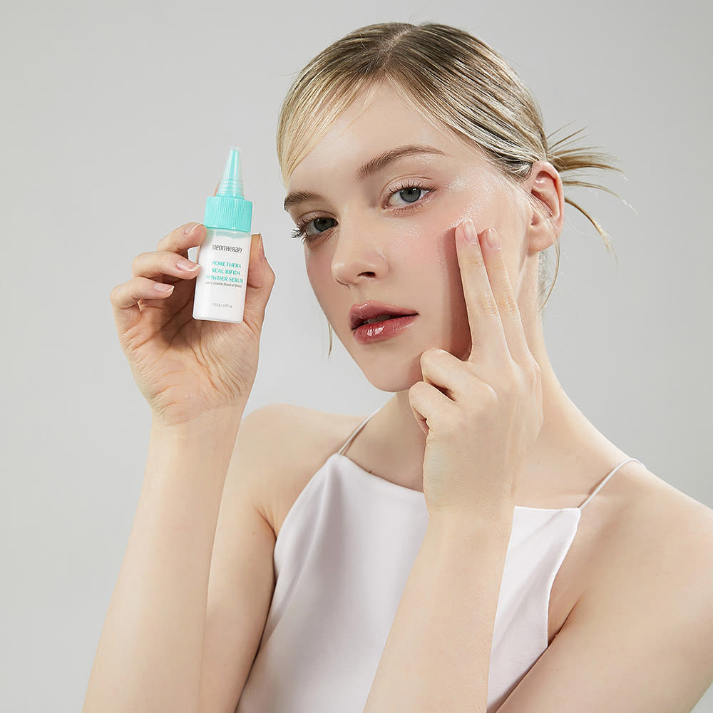 Meditherapy Porethera Real Bifida Powder Serum is a unique powder-to-serum treatment designed to refine the look of pores and uneven texture while supporting a healthier-looking skin barrier. Activated with moisture, the ultra-fine powder transforms into a lightweight serum layer that helps create a soft-focus, “blur” finish—ideal for skin that looks rough, porous, or shiny. Powered by bifida ferment-derived conditioning care plus skin-balancing support, it helps smooth the surface, improve the look of resilience, and prep skin for makeup with a clean, refined feel.