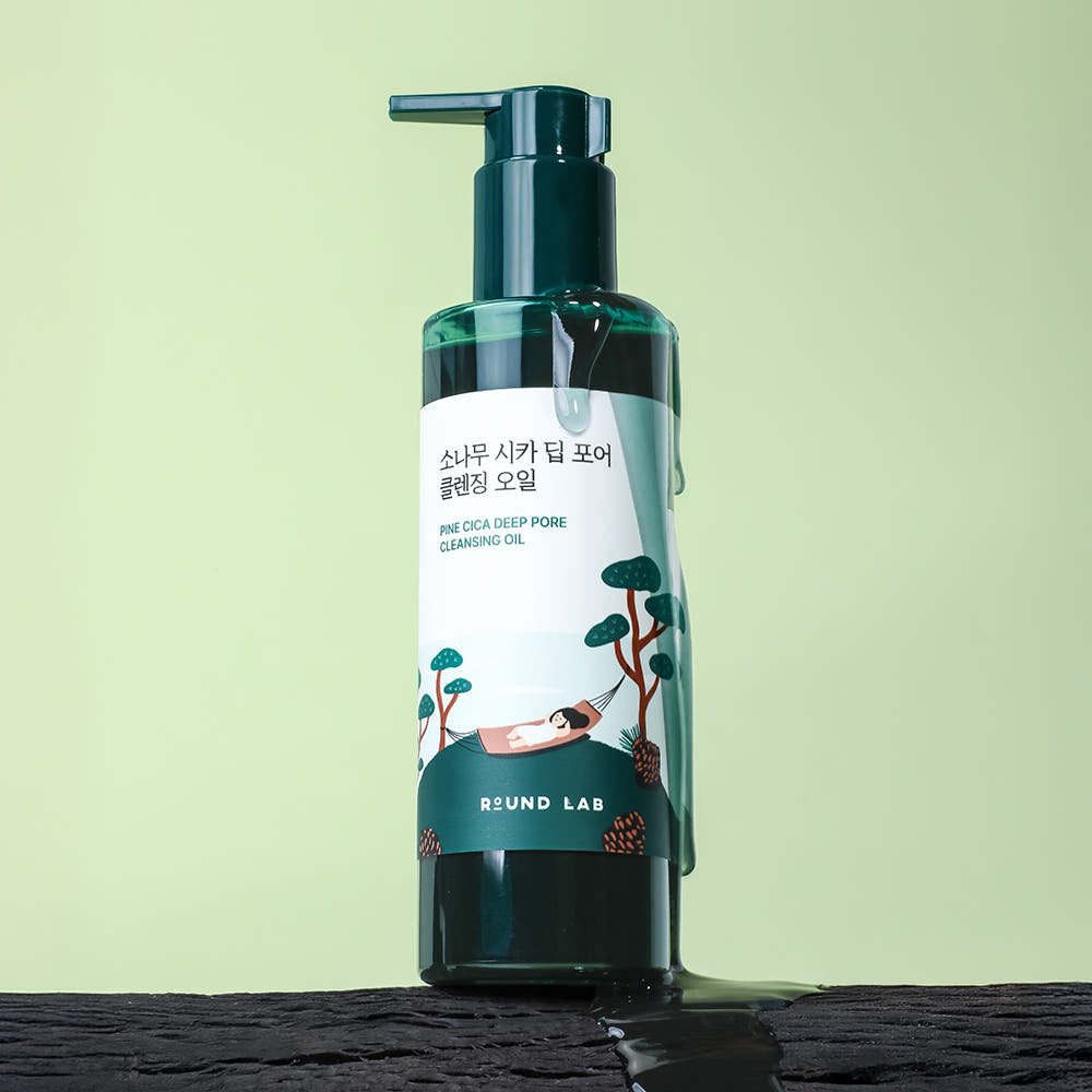 Round Lab Pine Cica Deep Pore Cleansing Oil is a fresh, lightweight cleansing oil made to melt away sunscreen, makeup (including long-wear residue), and pore buildup while keeping the skin feeling calm and balanced. Powered by Pine Cica Activer™ for soothing support, plus ACZERO™ for sebum-balance care, it helps cleanse congested areas (like the nose and T-zone) without leaving a heavy, sticky finish. With Green PHA and charcoal powder, it supports a cleaner-looking pore feel and a smoother, refreshed finish after emulsifying and rinsing.