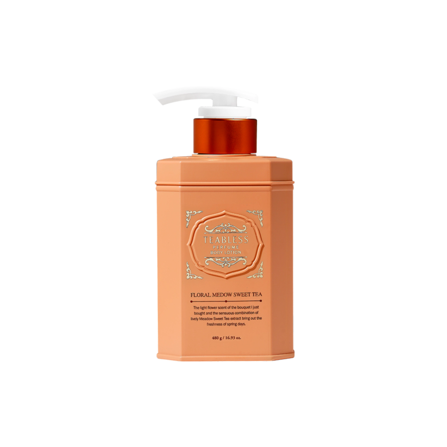 Teabless Floral Meadow Sweet Tea Perfume Body Lotion is a fragrance-infused body lotion designed to moisturize the skin while leaving a soft, uplifting floral scent. Inspired by sweet tea blended with fresh meadow florals, this lotion delivers lasting hydration and a light, refreshing perfume-like finish. Its smooth, lightweight texture absorbs comfortably, making it ideal for daily body care with a gentle, cheerful scent experience.